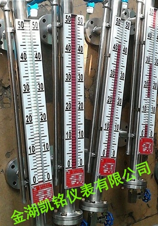 在管體的另一側可按用戶需要加裝電遠傳變送器,將液位高度轉換成標準電流信號輸出,以供液位信號輸出,以供液位信號遠傳至二次儀表進行指示控制與檢測。